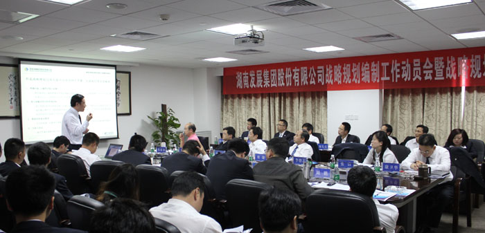 2012年4月12日上午,湖南發展集團股份有限公司戰略規劃編制工作動員會暨戰略規劃培訓會在總部舉行,公司總部全體員工、株洲航電分公司經營班子及各部門副主任以上人員參加了會議。負責此次戰略規劃編制工作的正略鈞策管理咨詢團隊出席會議,會議由公司總裁劉健先生主持。